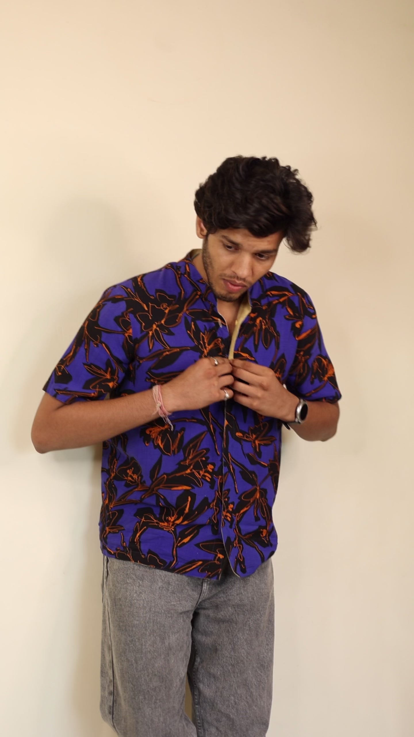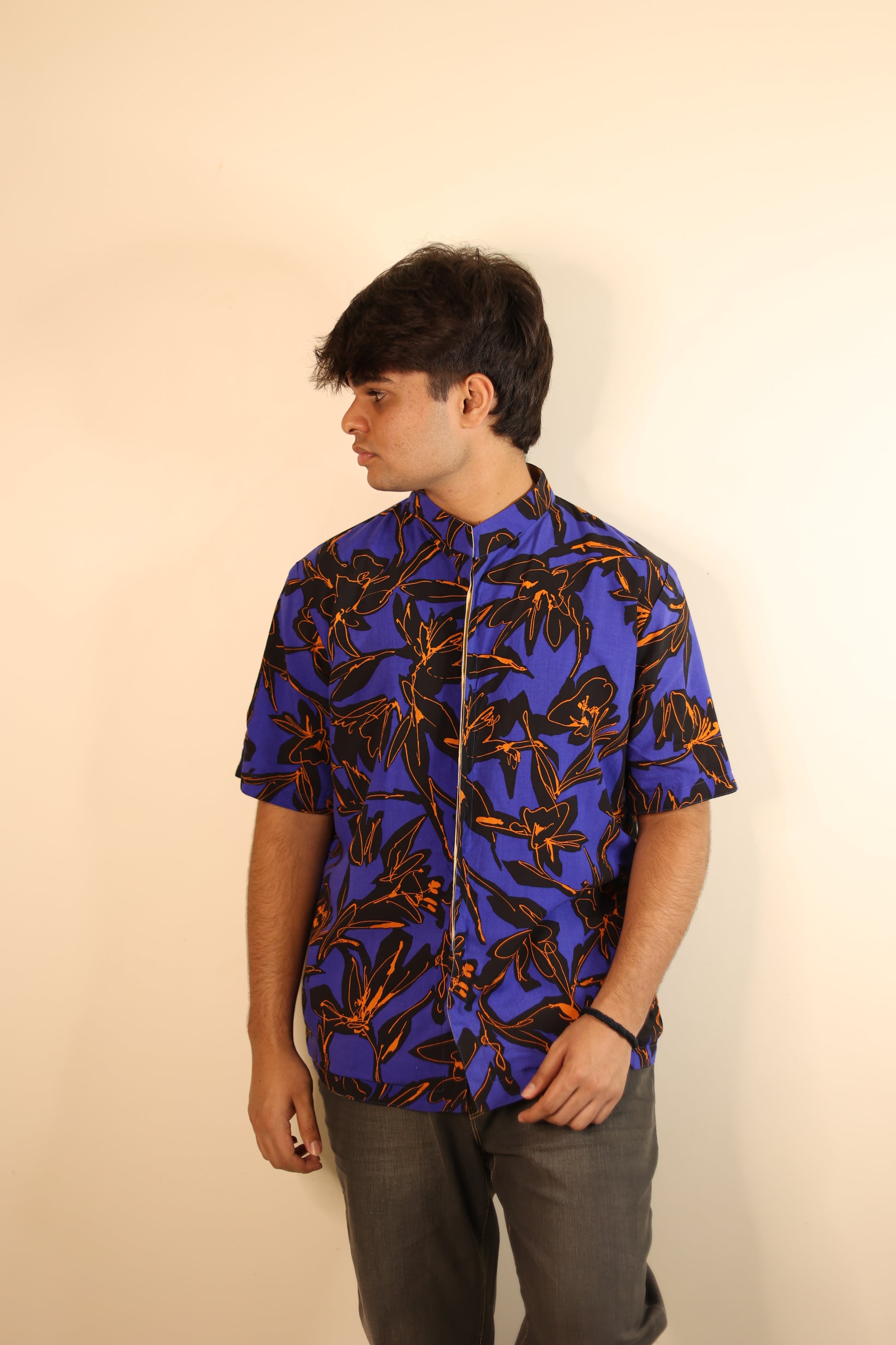 Blue Orange Flowers + Beige UniRev Shirt (Half Sleeves)