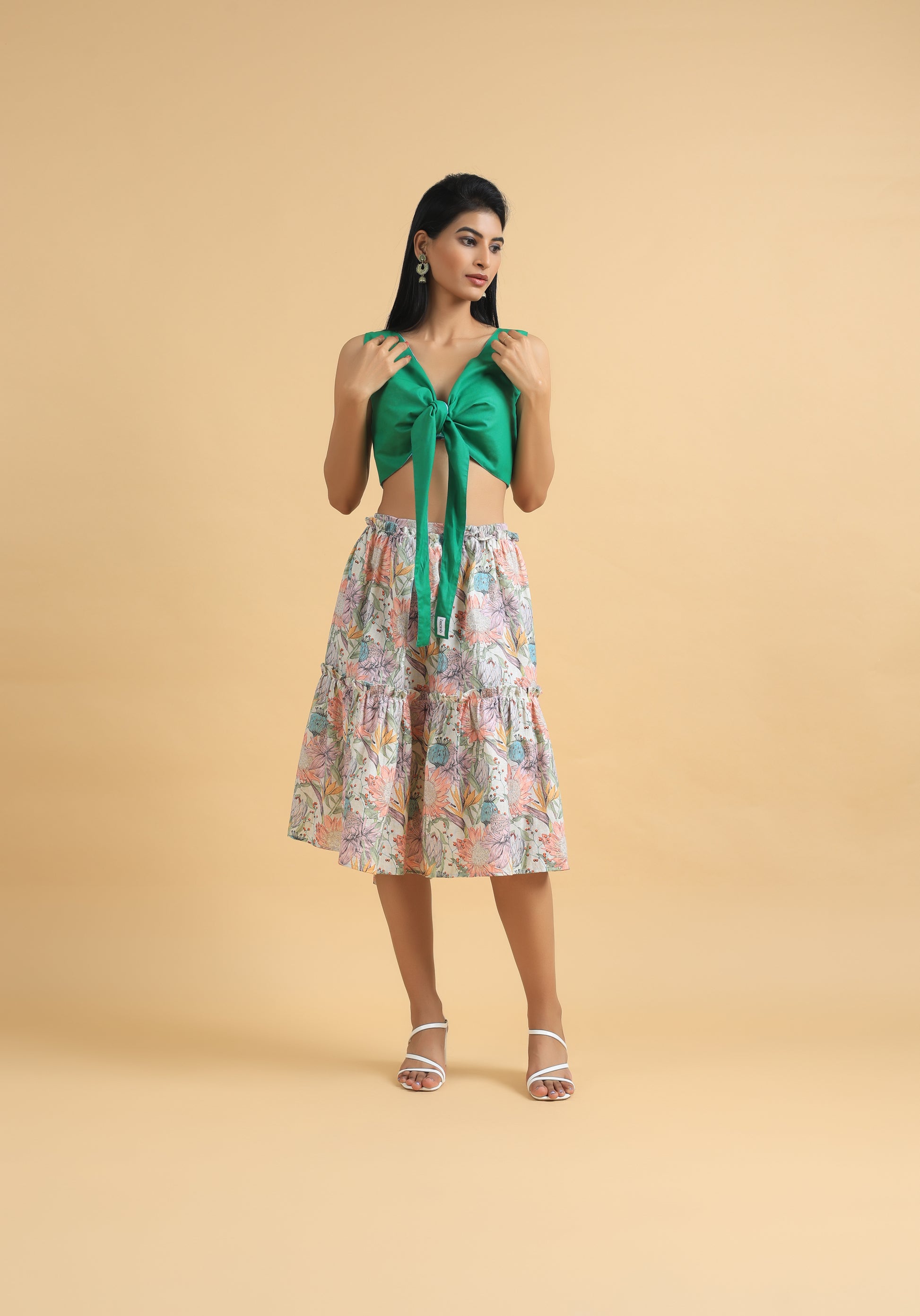 The Cascada Skirt is where elegance meets innovation — a flowy, tiered skirt that hides secrets in its layers.
