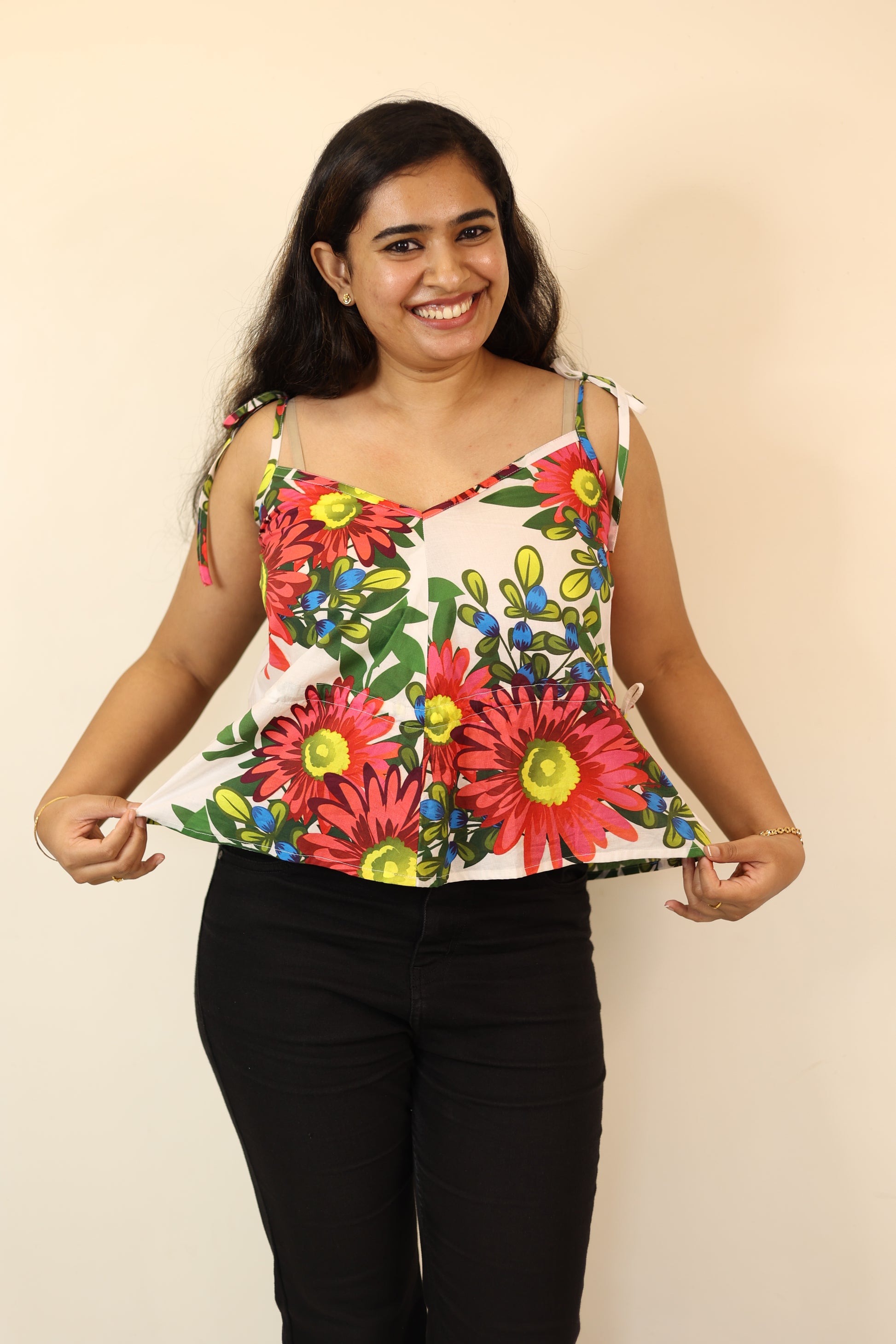 Say hello to the upgraded version of our bestseller - the Double Trouble w/ Dori Top! This playful piece keeps the two-in-one neckline magic (round & V neck) and adds a new twist — a drawstring at the waist, so you can decide how you want to wear it: