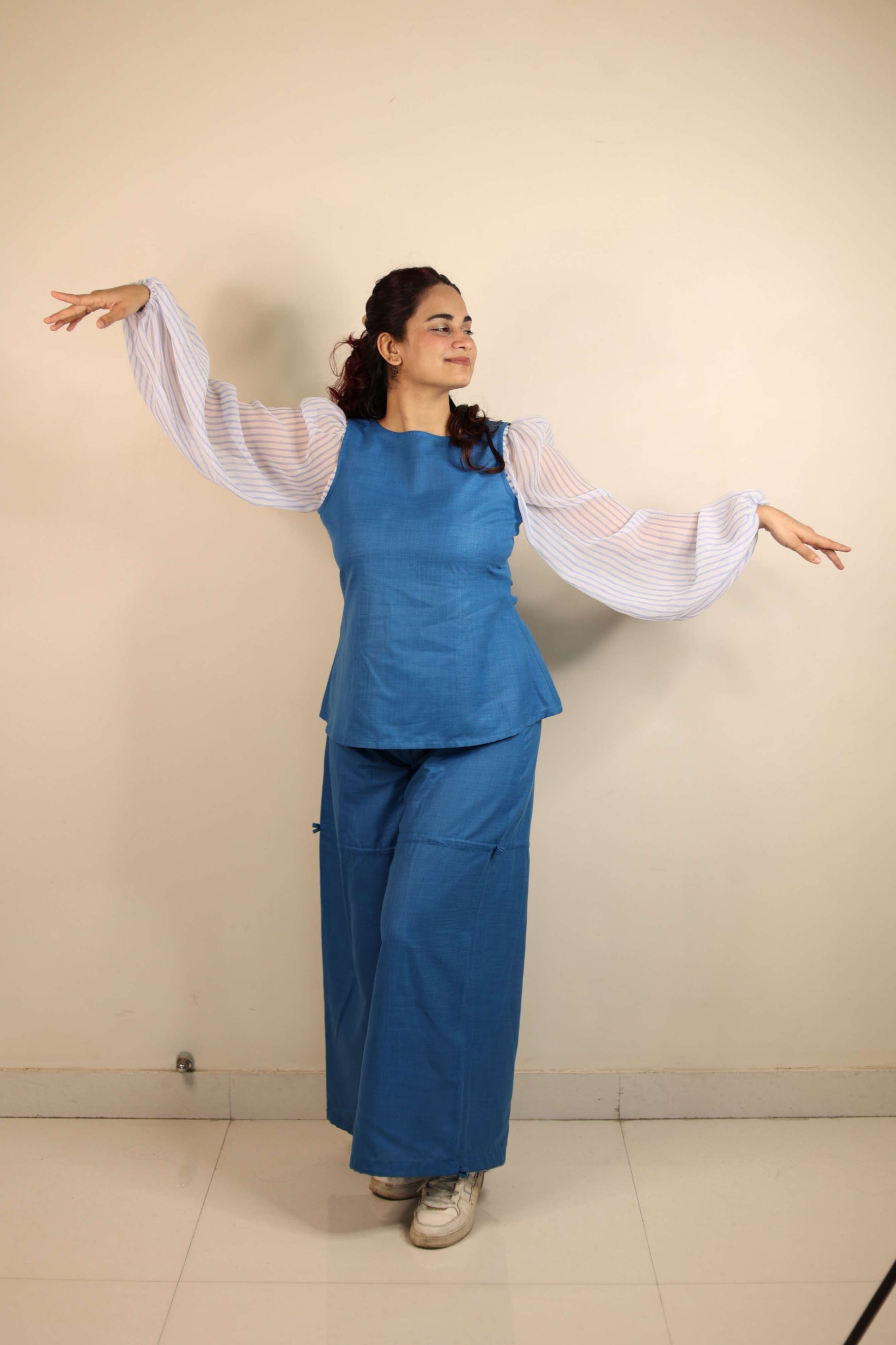 Sleeves? No sleeves? Loose? Tight? This set can do it all. The Beyond Set is your everyday style BFF — a cotton-linen co-ord with detachable balloon chiffon sleeves and transformable loose pants. It’s your all-day comfort-meets-style hero. For tutorials, styling inspo, customizations & plus sizes — see the details below!